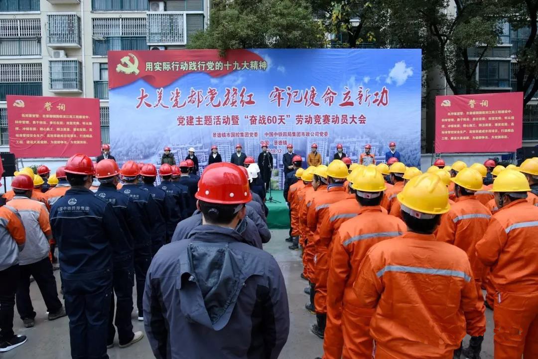 12月7日,由景德鎮(zhèn)市國(guó)控集團(tuán)黨委與中鐵四局集團(tuán)市政公司黨委聯(lián)合舉辦的“大美瓷都黨旗紅 牢記使命立新功”主題黨建活動(dòng)在國(guó)信濱江苑城市棚戶區(qū)改造安置房建設(shè)項(xiàng)目工地隆重舉行。項(xiàng)目建設(shè)、監(jiān)理、設(shè)計(jì)、施工單位有關(guān)領(lǐng)導(dǎo)以及120余名建設(shè)者代表參加活動(dòng)。