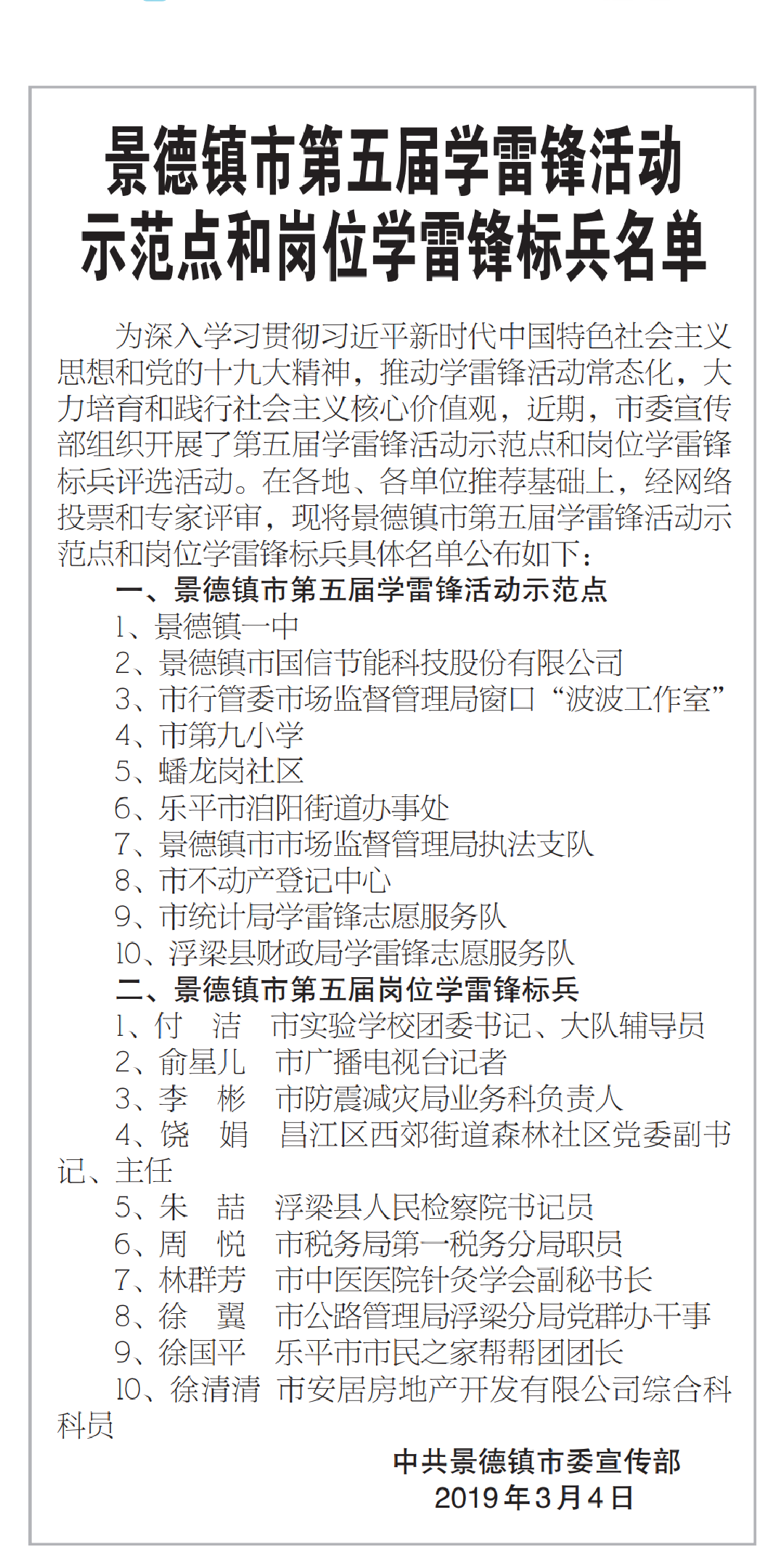 2019年第56個學雷鋒日來臨之際,景德鎮(zhèn)市國信節(jié)能科技股份有限公司被景德鎮(zhèn)市委宣傳部評為 “景德鎮(zhèn)市第五屆學雷鋒活動示范點”。