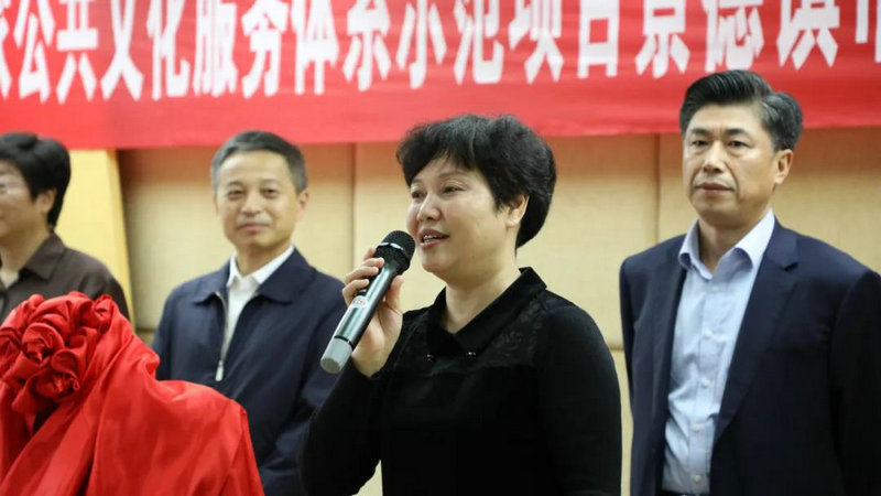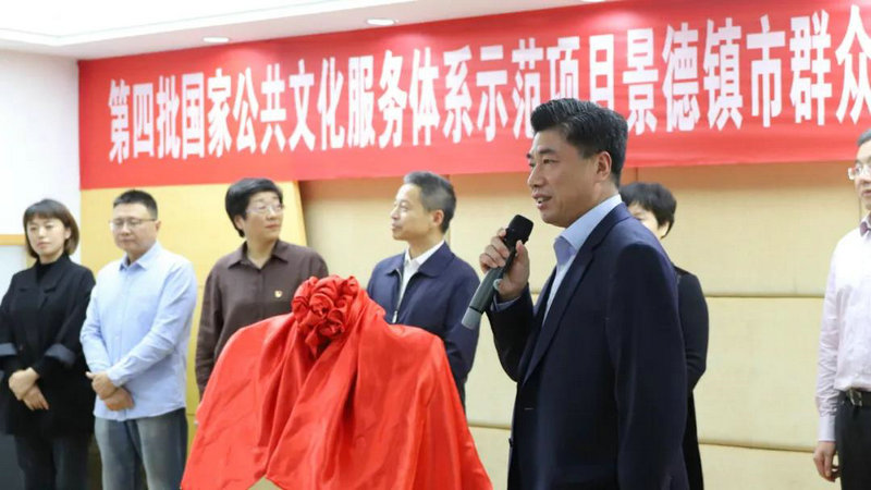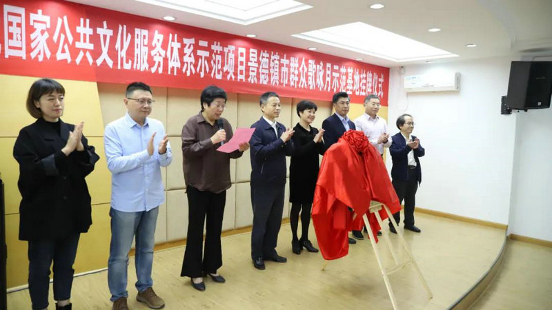 儀式上,吳林和江妙民共同為第四批國(guó)家公共文化服務(wù)體系示范項(xiàng)目——景德鎮(zhèn)市群眾歌詠月活動(dòng)“示范基地”揭牌。