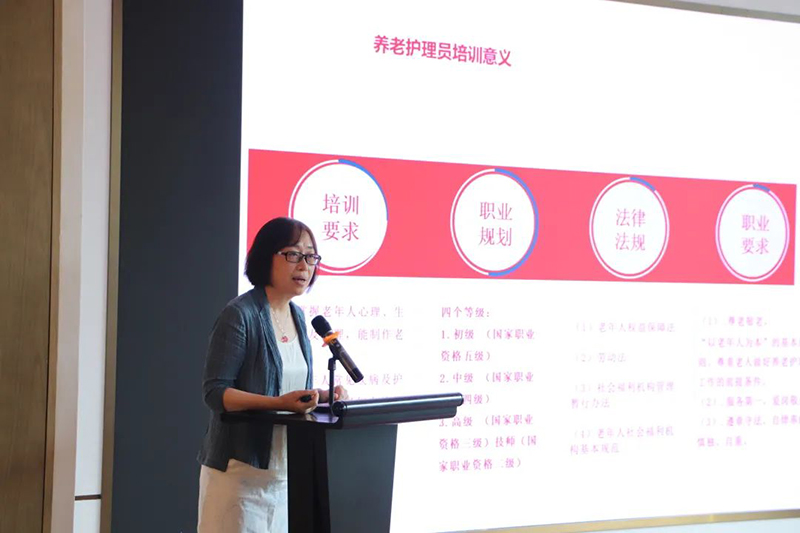 市紅十字會(huì)黨組書記劉娟書記在開班儀式講話中表示,在老齡化社會(huì)的背景下,打造專業(yè)養(yǎng)老護(hù)理團(tuán)隊(duì)的工作是康養(yǎng)事業(yè)的重要組成部分,也是提升養(yǎng)老服務(wù)水平的主要途徑。我們要進(jìn)一步重視養(yǎng)老護(hù)理員培訓(xùn),舉辦養(yǎng)老護(hù)理員培訓(xùn)班,通過系統(tǒng)培訓(xùn),強(qiáng)化護(hù)理員養(yǎng)老服務(wù)理念,提升養(yǎng)老護(hù)理人員工作能力和業(yè)務(wù)水平,向老人提供更為專業(yè)化、規(guī)范化和人性化的服務(wù)。