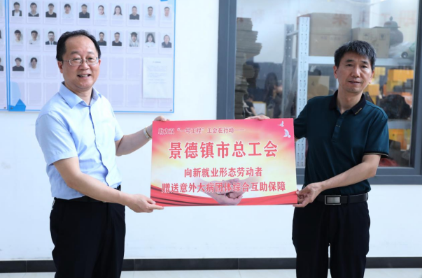 景德鎮(zhèn)市總工會黨組副書記、常務(wù)副主席伍恒明贈送意外大病團(tuán)體綜合互助保障