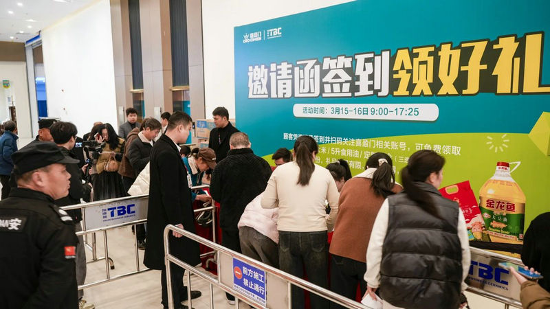 開業(yè)現(xiàn)場,人潮涌動,簽到處排起長龍,消費者們爭相參與各種現(xiàn)場優(yōu)惠活動。超低價爆款搶購、家電滿額抽獎、擲骰子選折扣等活動點燃全城消費熱情。