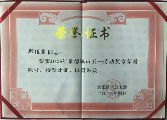 近日,國控集團下屬子公司景德鎮(zhèn)市國信人文紀念有限公司鄭佳鑫同志,憑借在殯葬行業(yè)18年的深耕,榮獲景德鎮(zhèn)市總工會授予的2025年景德鎮(zhèn)市“五一勞動獎?wù)隆睒s譽稱號。